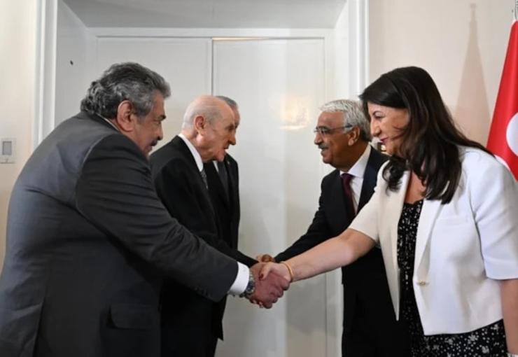 DEM Parti, terör örgütü PKK'li bir grubun silahlarını sembolik olarak bırakıp yakmasının ardından ilk kez MHP lideri Devlet Bahçeli ile bir araya geldi.