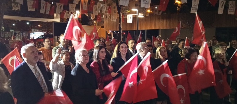 Atatürkçü Düşünce Derneği (ADD) Bayraklı Şubesi ile Cumhuriyet Halk Partisi (CHP) Bayraklı İlçe Başkanlığı tarafından düzenlenen Cumhuriyet Bayramı Resepsiyonu, Mansuroğlu Mahallesi Sakarya Caddesi Ressamlar Sokağı’nda gerçekleştirildi.