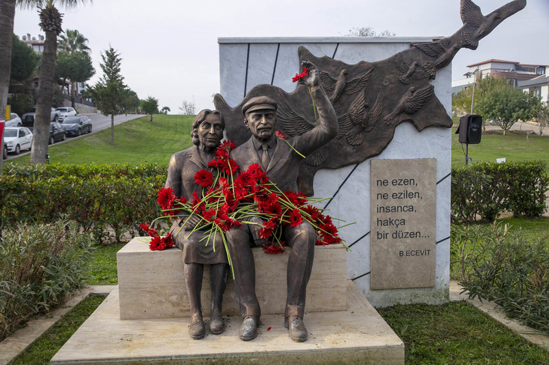 Ecevit’in ne yapmaya çalıştığını olgun yaşa geldiğimizde daha doğru anladığınız liderlerden birisi olduğunu söyleyen CHP Güzelbahçe İlçe Başkanı Devrim Seyrek; “Aslında eksiğimiz de bu koşullara bakmadan, hangi lider olursa olsun onu anlamak yerine ona muhalefet yapmayı doğru buluyoruz. Bu bizim içimizde kronikleşmiş bir durum maalesef. Cumhuriyet Halk Partisi Genel Başkanına, Batı cepheleri komutanına, Milli Şefin karşısına aday olmuş İsmet İnönü‘ye rakip oluyorsunuz. İlk turda salt çoğunluk sağlanamayınca ikinci turda o Milli şef, Atatürk’ün en yakın silah arkadaşı batı cepheleri komutanı sizin lehinize çekiliyor ve Genel Başkan oluyorsunuz. Bu başlı başına konuşulacak bir olay zaten. Ancak Kuzey Kıbrıs Türk Cumhuriyeti’nin temelini atan da bugünkü Kıbrıs Türklerinin de bağımsızlığını hatta Güney Kıbrıs’taki rumların sorununu da çözen bağımsızlığının önderi olmuş adam olarak karşınıza çıkıyor. Sonra gündüzleri, geceleri bütün köylerde kahvelerde miting yaparak karşımıza çıkıyor. Bütün bunlar gibi kendi siyaseti açısından bizim ona anlayacağımız tarafından anlaşılabilir durum ama ben başka bir şeye dikkat çekmek istiyorum. Bülent Ecevit birincisi şairdi bu bugün dinlediğimiz birçok şarkının da sözlerinin yazarıydı. İkincisi ve önemlisi Bülent Ecevit sadece Rahşan’a değil memleketine, milletine de aşıktı. Bülent Ecevit hem Cumhuriyet’e hem Atatürk’e hem de milletine sevdalıydı şimdi yan yanalar buradaki heykelde olduğu gibi zaten hiç de ayrılmadılar ruhları şad olsun saygı ve sevgiyle anıyoruz” diye konuştu.