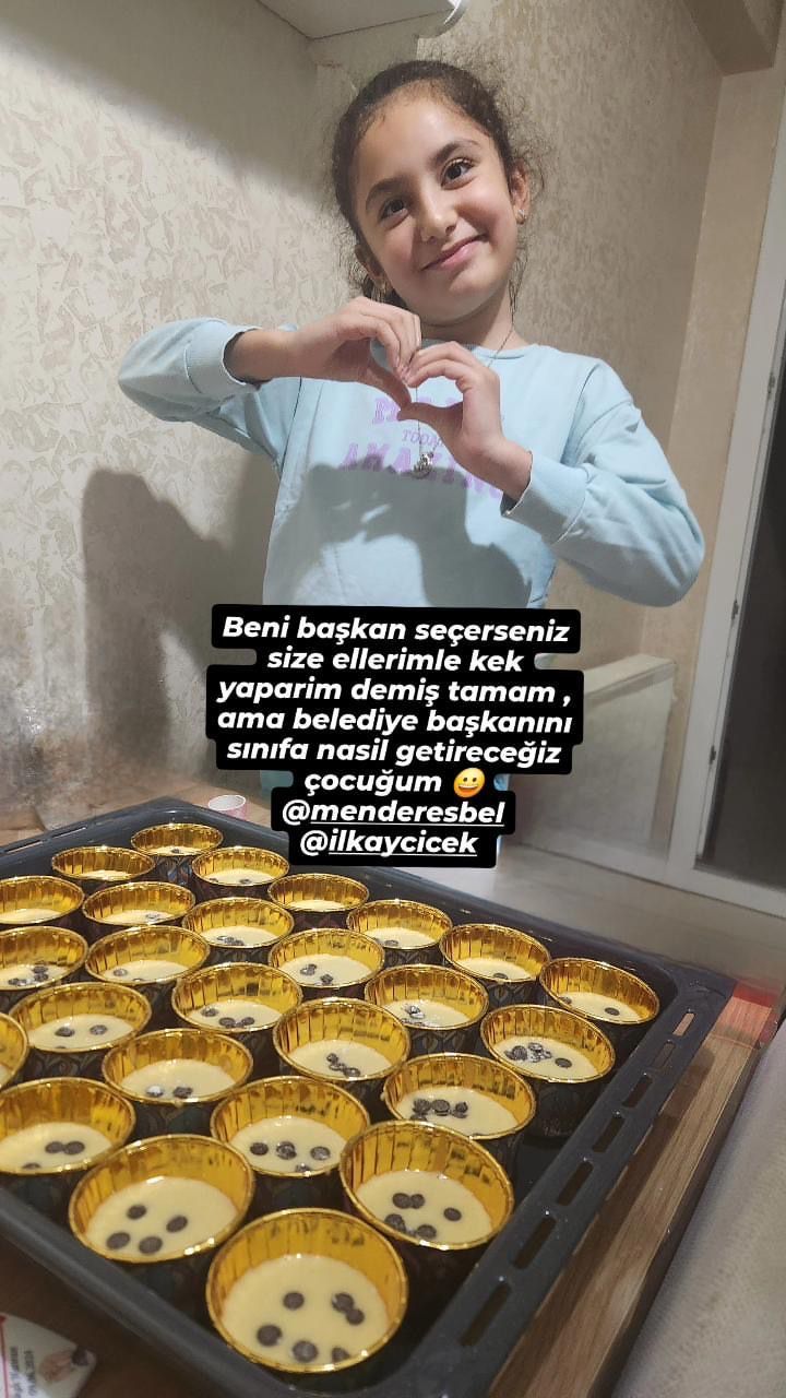 Menderes Maurice Aliberti- Esin Özgener İlkokulu 3/A sınıfında başkanlık seçimlerinde kalpleri ısıtan bir olay gerçekleşti. Sınıf başkanlığı seçimlerinde “kazanırsam size kek yaparım, sınıfa da Menderes Belediye Başkanı İlkay Çiçek’i getireceğim” diyen Miray Öre sözünü tuttu. Öre’nin vaadini yaptığı kek ile birlikte sosyal medyada paylaşan annesinin paylaşımını fark eden Menderes Belediye Başkanı İlkay Çiçek bu olaya kayıtsız kalmadı.