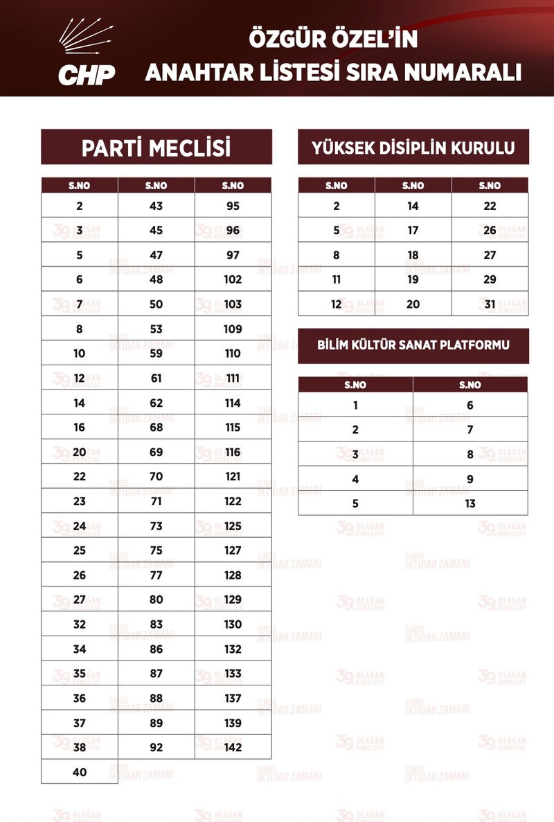İŞTE ÖZGÜR ÖZEL'İN ANAHTAR LİSTESİ;