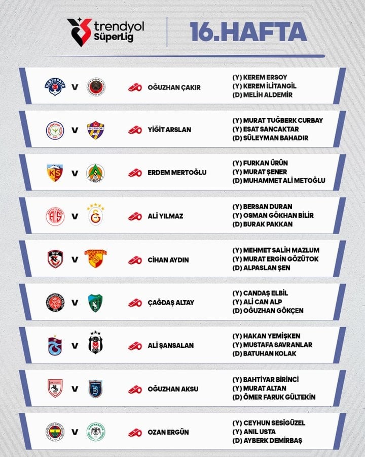 Trendyol Süper Lig'de 16. haftanın hakemleri belli oldu. Trabzonspor'un Beşiktaş'ı ağırlayacağı haftanın derbisinde Ali Şansalan görevlendirildi.