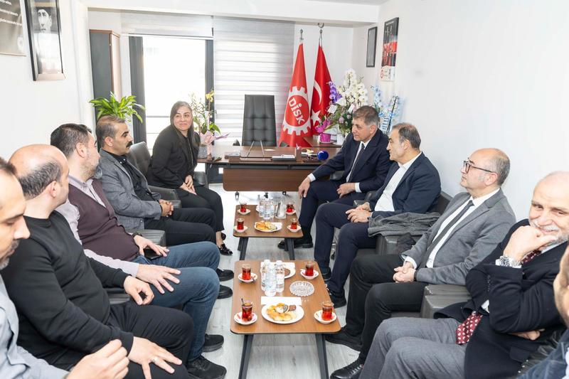 İzmir Büyükşehir Belediye Başkanı Dr. Cemil Tugay, DİSK Ege Bölge Temsilciliğine atanan Deniz Şahin Gümüştekin’e hayırlı olsun ziyaretinde bulundu. Şube başkanlarının da katıldığı ziyarette, birlik ve dayanışma mesajları verildi.
