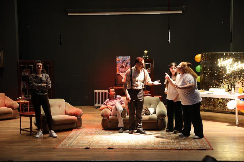 Oyunun sonundaysa Dünya Tiyatrolar Günü, sahnede kutlandı. Başkan Aydın Pehlivan, eşi Filiz Pehlivan ve oyuncularla birlikte hazırlanan pastayı kesti.