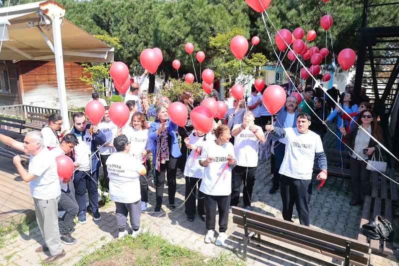 Konak Engelsiz Yaşam Köyü’nde düzenlenen Otizm Farkındalık Günü etkinliğinde ‘Biz de Varız’ diyen merkez öğrencileri, farkındalık için gökyüzüne kırmızı balonlar gönderdi.