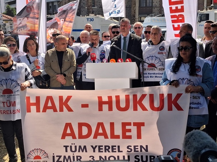 Basın açıklamasını okuyan Tüm-Yerel-Sen 3 Nolu Şube Başkanı Ufuk Cengizler: "Bu girişim; İzmir halkının emeğini, bu kentin geleceğini ve Atatürk’ün armağan ettiği umudu hedef alıyor! Açıkça söylüyoruz: Bu uygulama hukuki değildir" dedi.