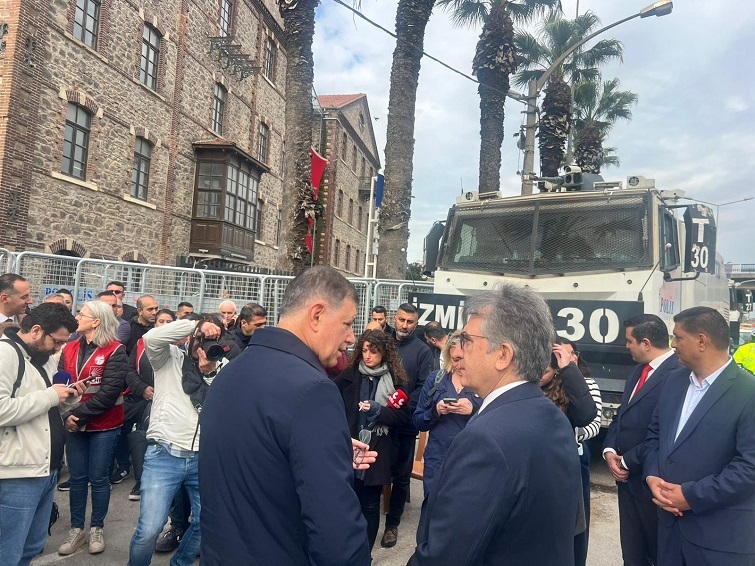 Değerli basın mensupları, günlerdir İzmir halkının sadece tarihi bir binaya sahip çıkmak için değil, aynı zamanda İzmir'de var olan sosyal belediyecilik anlayışına, İzmir gençlerine sunulan eğitim fırsatına sahip çıkmak için verdikleri mücadeleyi, izliyoruz.