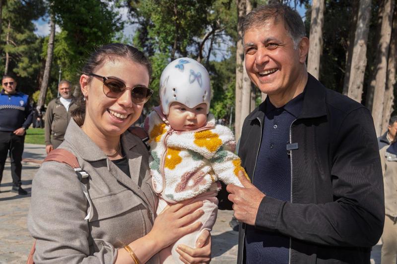Ziyaret sırasında parkta düzenlenen bir doğum günü kutlamasına denk gelen Başkan Tugay, 10 yaşındaki Karya Göçte ile yeni yaşlarına giren Eylül ve Çınar’ın sevincine ortak olarak çocukların doğum gününü kutladı. Renkli anların yaşandığı parkta çocuklarla yakından ilgilenen Tugay, ailelerle de sohbet etti.