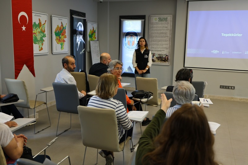 Kimya Mühendisi Merve Bodur Keskin tarafından verilen eğitimde, mutfak atıklarından kompost gübre üretiminin yöntemleri katılımcılarla paylaşıldı. Eğitim kapsamında ilk olarak İzmir Büyükşehir Belediyesi Tarımsal Hizmetler Dairesi Başkanlığı’nın yürüttüğü “İyi Tarım” uygulamaları hakkında bilgilendirme yapıldı.